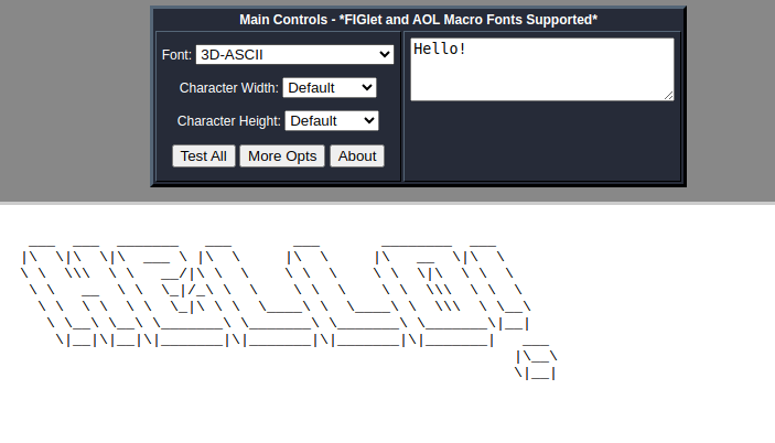 https://www.patorjk.com/software/taag/#p=display&f=3D-ASCII&t=Hello!