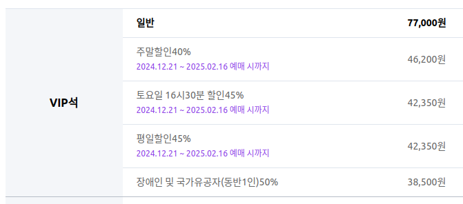 기본 티켓 가격에서 할인된 가격은 다음과 같습니다.