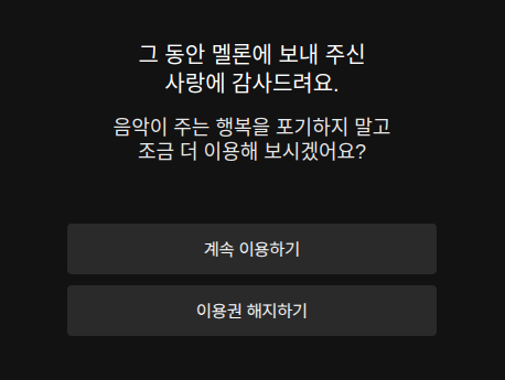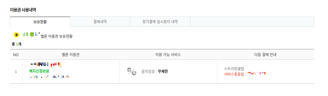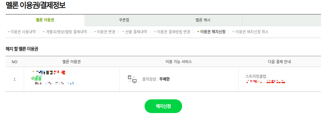 멜론 이용권에 '해지신청완료'가 보이네요.